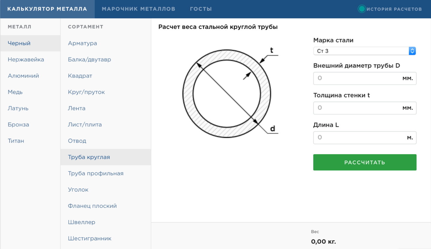 Калькулятор веса металлопроката
